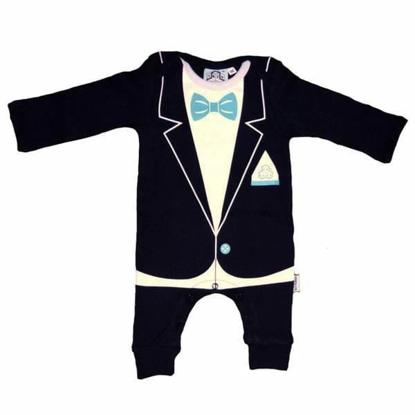 Let your little one dress to impress withΒ this tiny tuxedo onesie – super stylish and super practical.