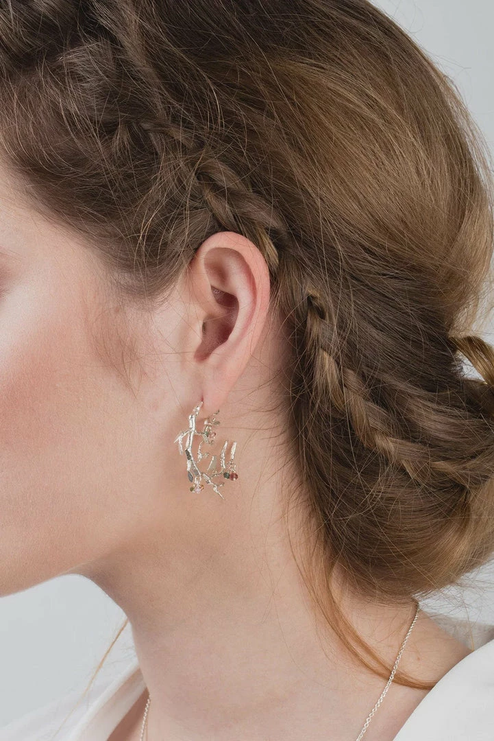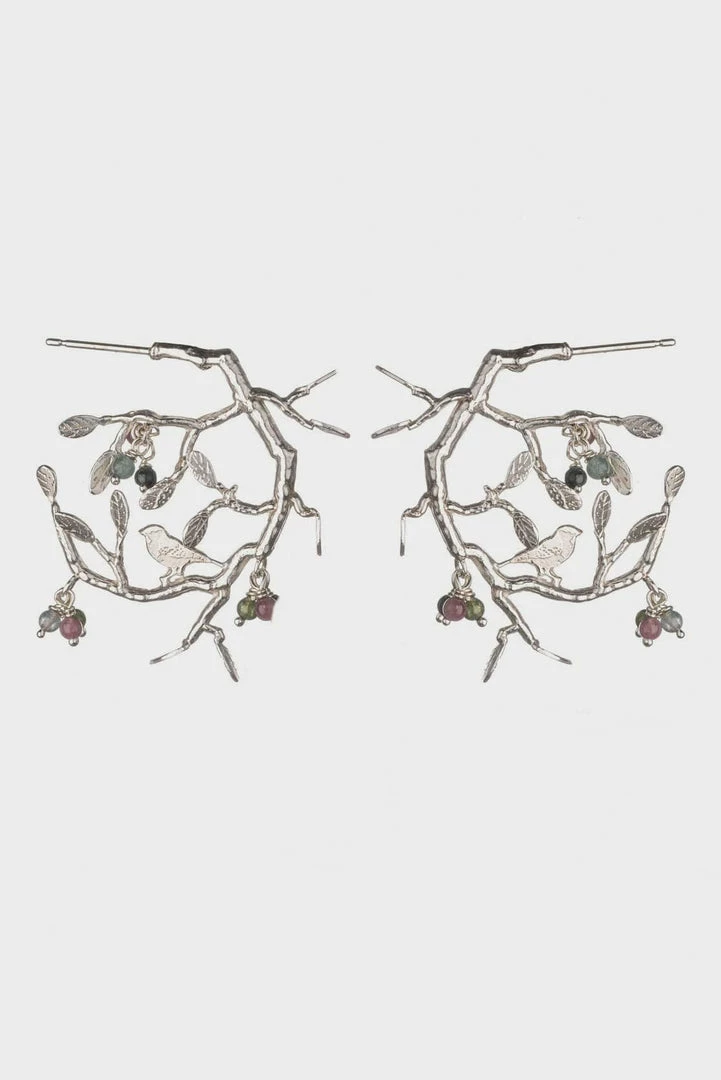 These stunning earrings feature a tiny bird perched in it’s favourite tree.