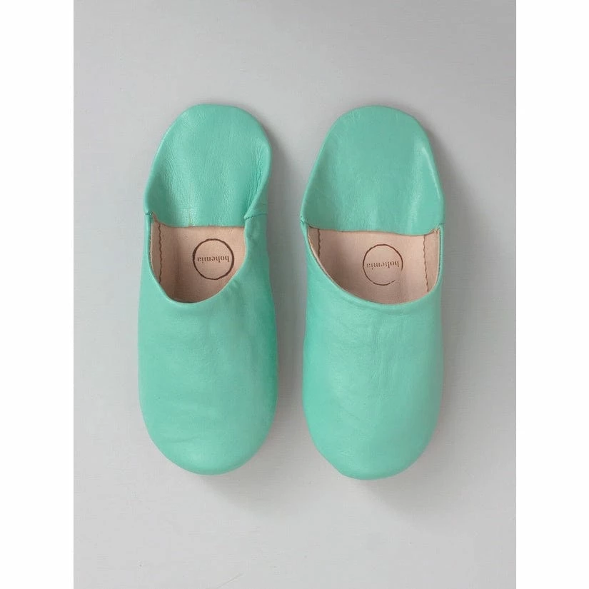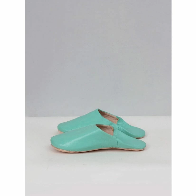 Women’s Moroccan Leather Babouche Basic Slippers in Duck Egg, are a classic pair of bespoke slippers in soft vintage pink coloured leather.Β Handmade using traditional techniques, these babouche slippers are crafted by a team of artisans in a workshop near Marrakech.