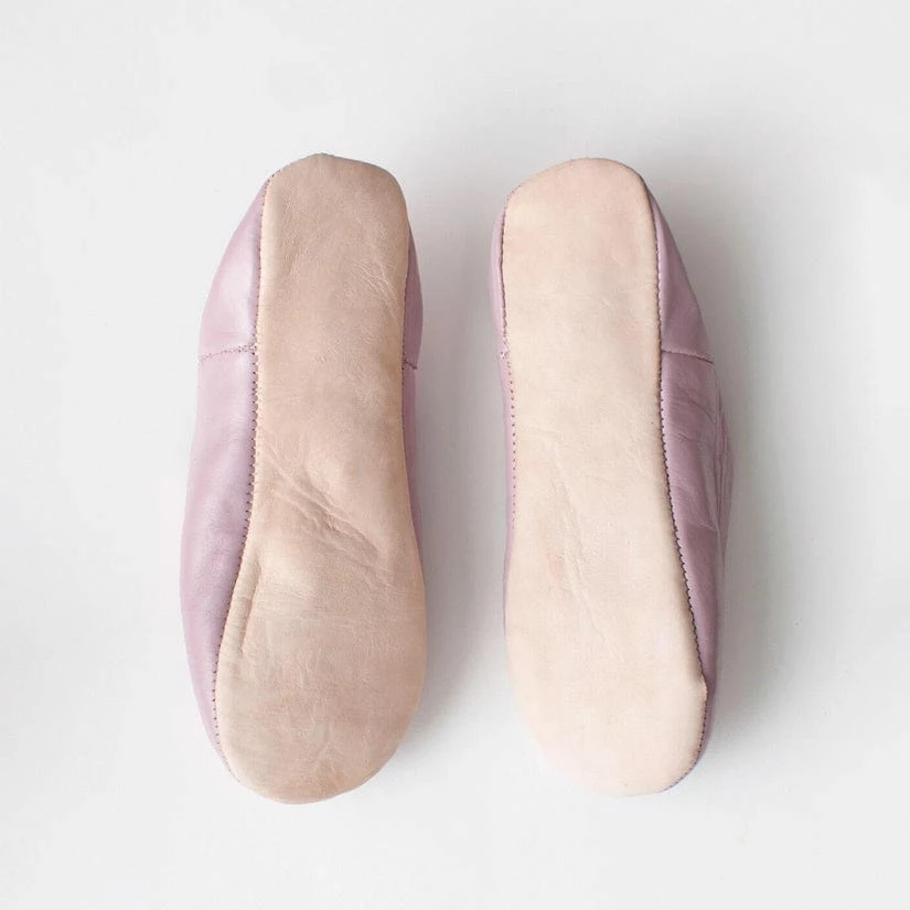 Women’s Moroccan Leather Babouche Basic Slippers in Vintage Pink, are a classic pair of bespoke slippers in soft vintage pink coloured leather. Handmade using traditional techniques, these babouche slippers are crafted by a team of artisans in a workshop near Marrakech.