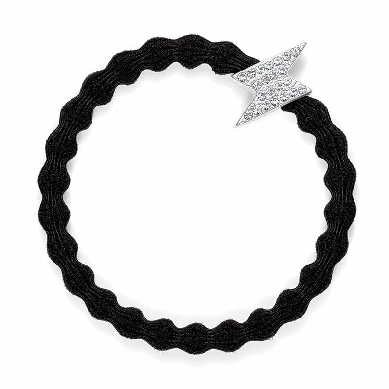 Silver Diamanté Bolt on a black bubble elastic hairband.