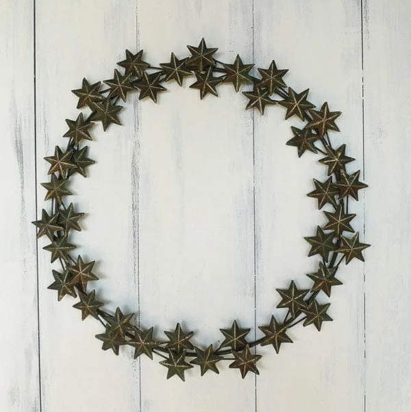 This wreath made of vmetal stars in a vintage style is perfect for the holidays or year round.