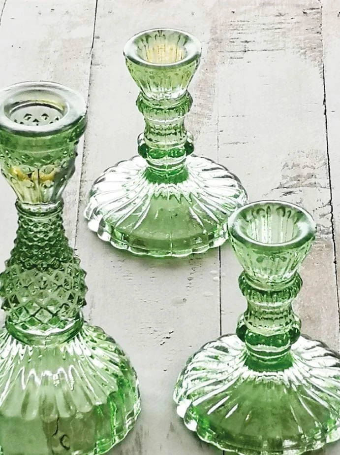 GLASS CANDLESTICK LEELA SPRING GREEN