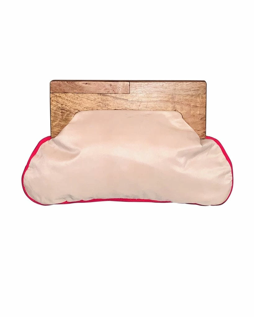 Gorgeous and unique clutch bag with a wooden handle and bright beaded fabric. Makes a real statement and is truly eyecatching!