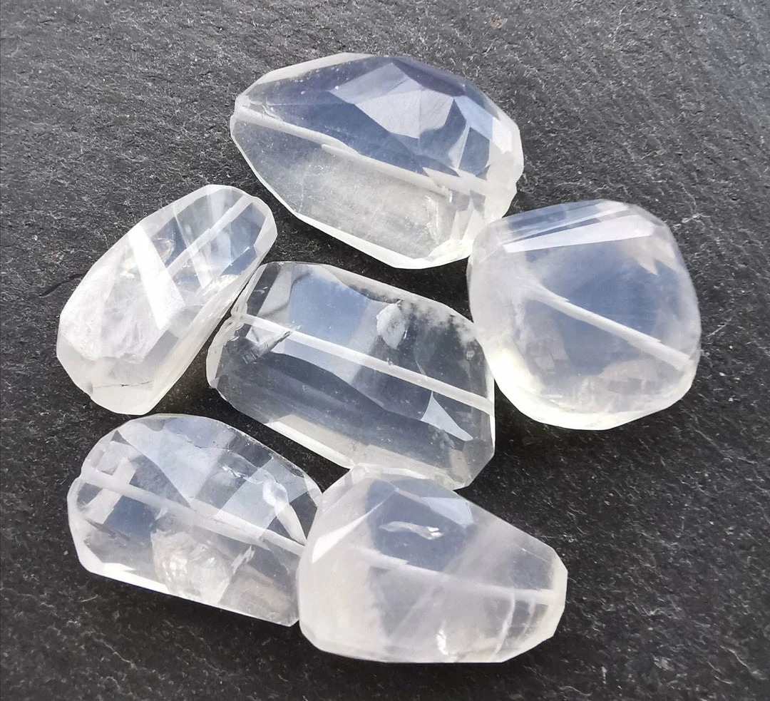 We were thrilled to find these new Ice Quartz faceted nuggets as they have the most beguiling and ethereal quality! Not completely clear and not opaque, they are kind of milky, with a tinge of pink-yellow to the colour. Available in two sizes the faceted nuggets some in small, which measure 15-20mm in size and large which measure 25-30mm in size.