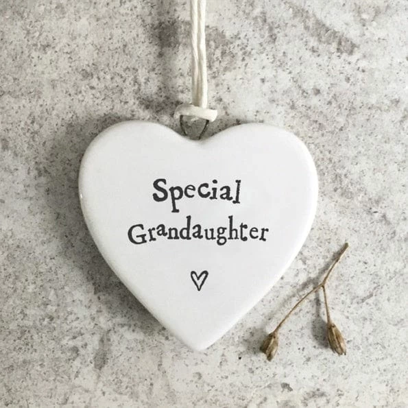 A smaller porcelain heart on a knotted string to hang on your present or as a special keepsake. A lovely little gift of congratulations. East of India produce heart warming, tasteful and beautiful keepsakes.