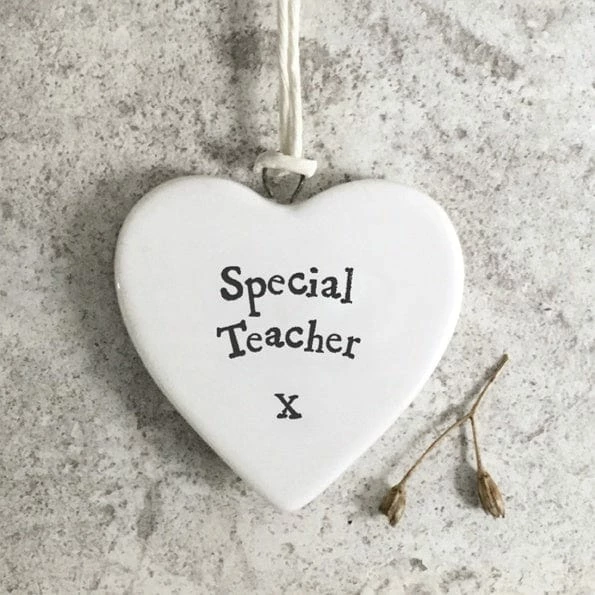 Little porcelain heart keepsake from East of India.Β Special Teacher.
