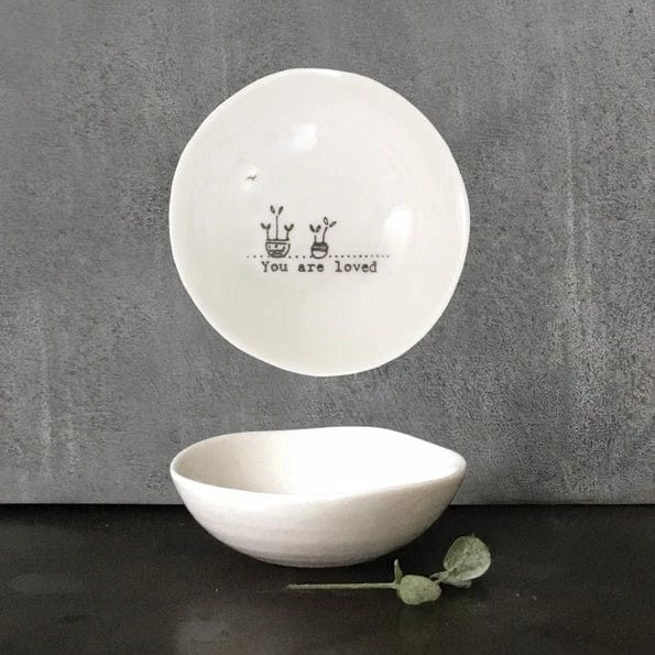 Gorgeous little white porcelain bowl with pot plants and the words “you are loved”. A lovely sentiment and gift.