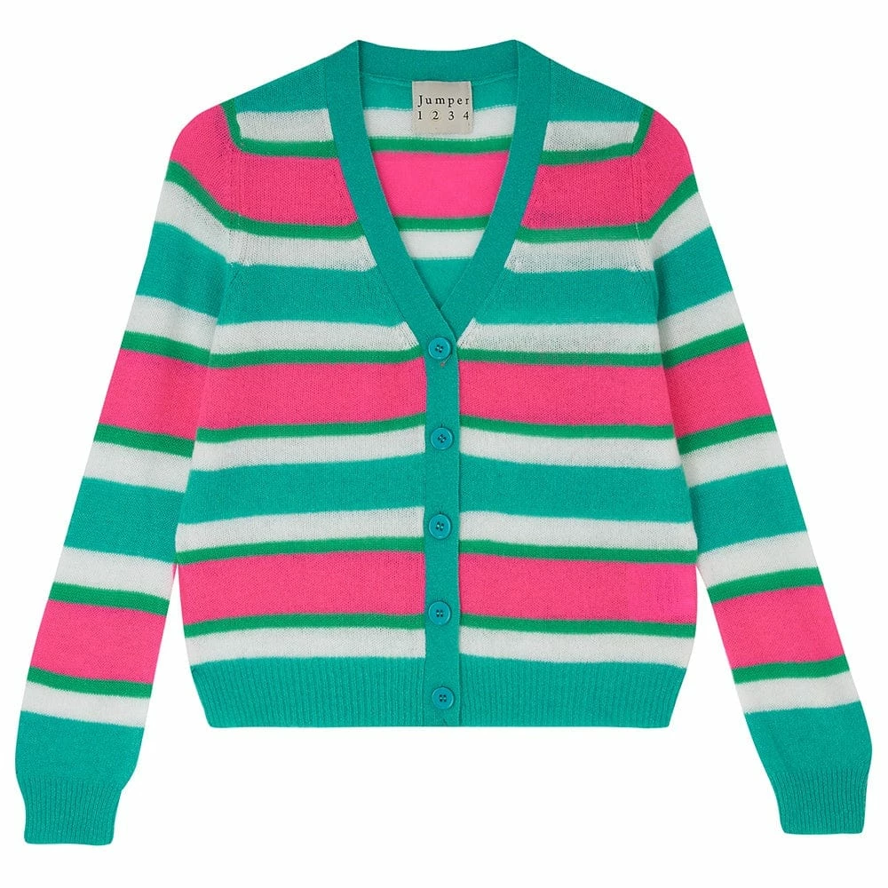 We adore this new season cardigan from Jumper 1234 with emerald green and bright neon pink. In 100% cashmere is is soft, warm and super funky. Just the thing to brighten up your casual attire!