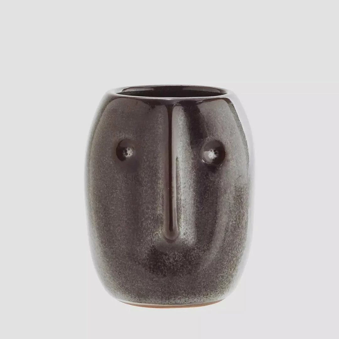 Promo ๐ฏ Madam Stoltz Flower Pot Face Imprint Red Stoneware ๐งจ
