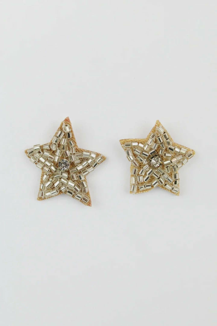 These gorgeousĀ silver star studsĀ areĀ hand beadedĀ with stunning silverĀ details. Also available in gold.