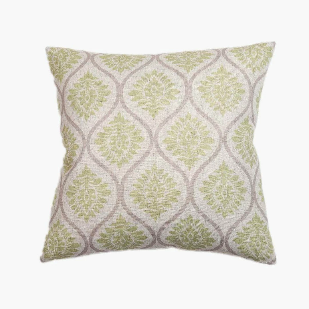 Very cultured and paired-down, Metropolitan is the grown-up in a trio of cushions that combine linen and chartreuse. Printed on a natural linen-mix basecloth.