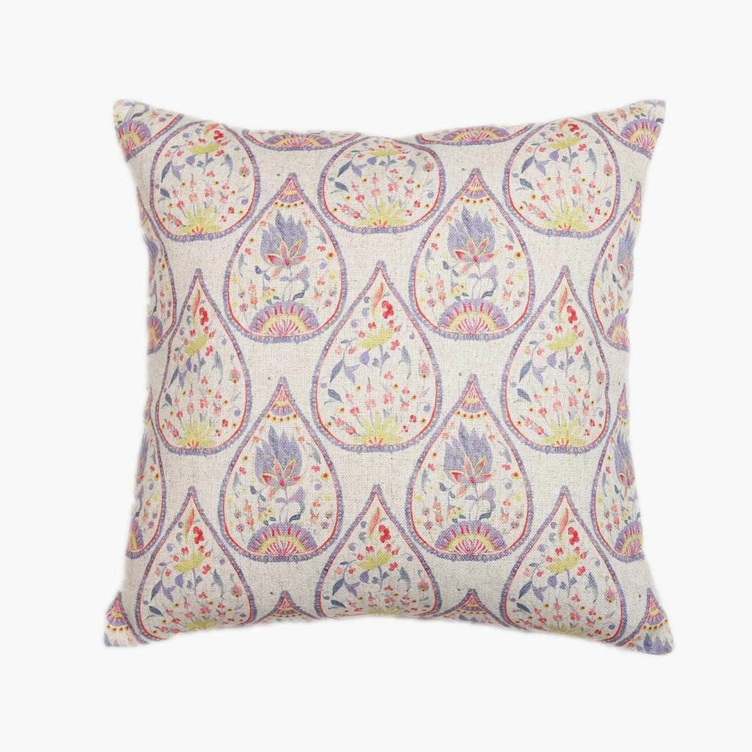 This fanciful take on paisley celebrates the ever-popular mix of blue and yellow. Printed on a natural linen-mix basecloth.