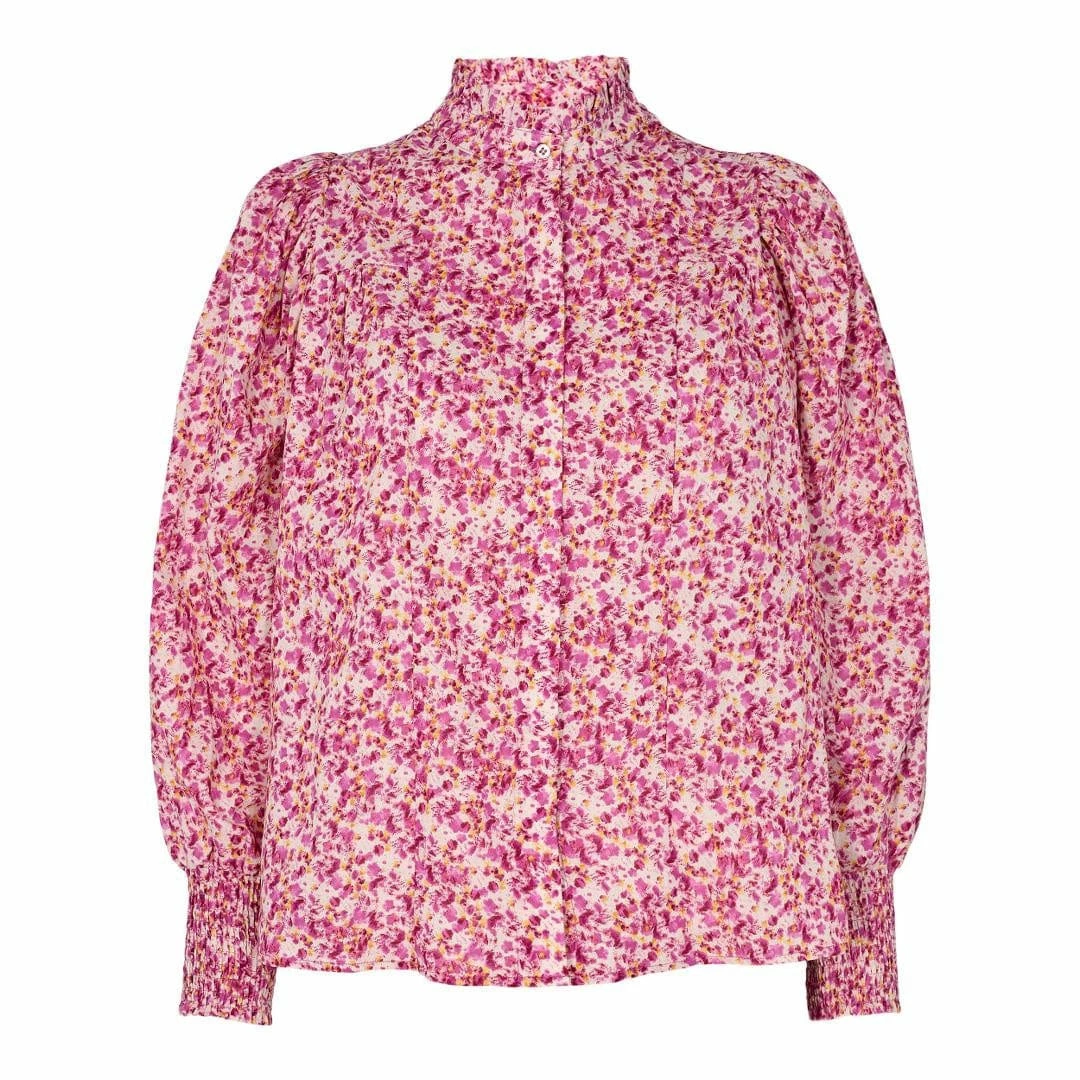 This Co’couture Donda Petra Shirt in pink is a lovely, feminine floral blouse with on trend puff sleeves and a high neckline. We love it paired with jeans for a chic relaxed look