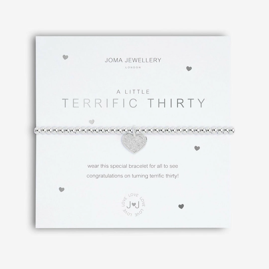Find a perfectly pretty present with our A Little ‘Terrific Thirty’ Bracelet. This silver-plated design showcases our signature stretch bead style, embellished with a sparkling heart-shaped charm. As always, the bracelet is wrapped around one of our lovely cards and finished with an adorable poem.