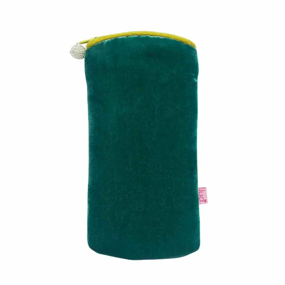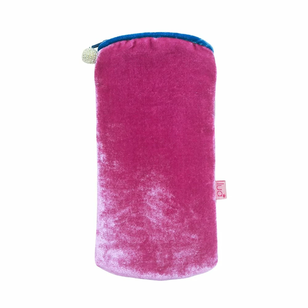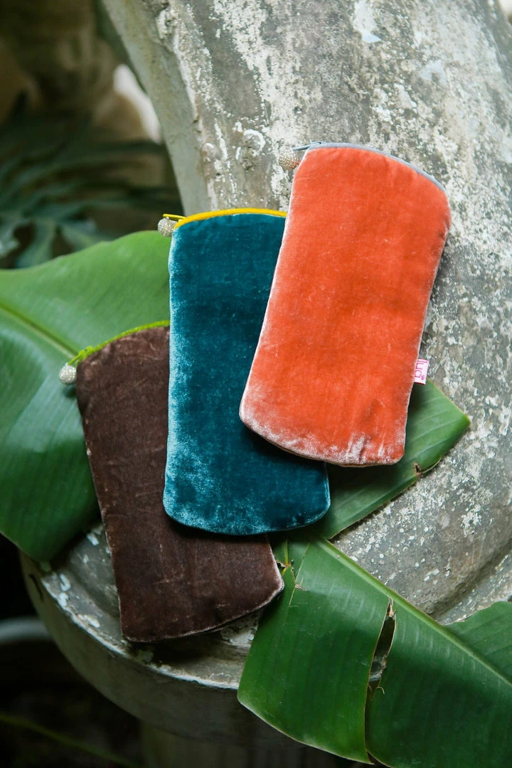 Soft padded glasses purse with zip. In a wide range of zingy and more subtle shades of luxurious silk velvet with contrast velvet trim.