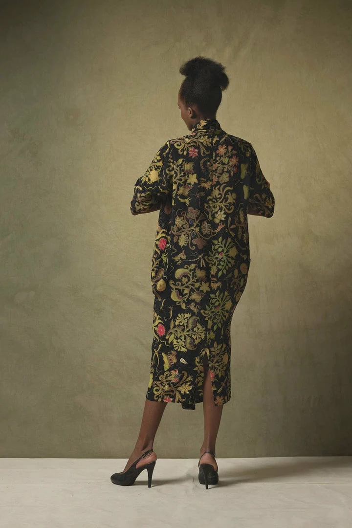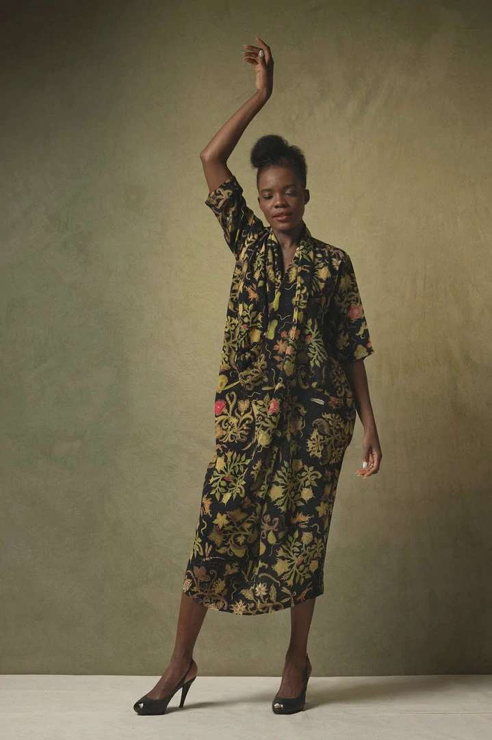 This cowlΒ neck, V-line dress features a pin tuck front, and pockets and can be styled loose or worn with the matching Obi Belt to create a beautiful silhouette.