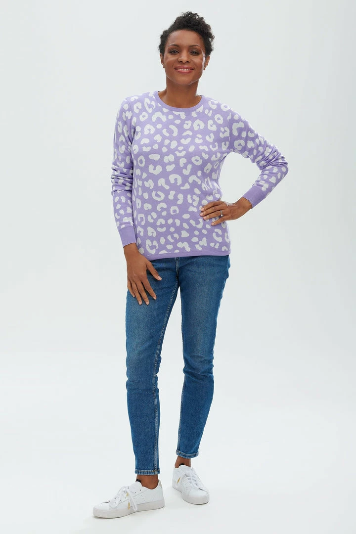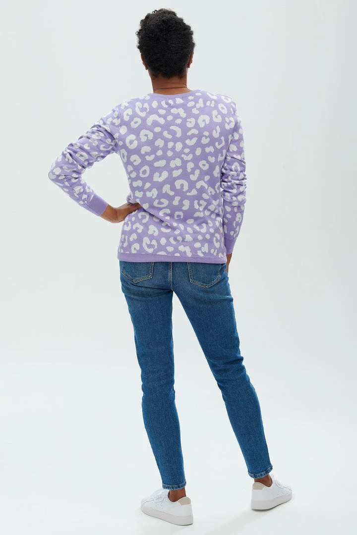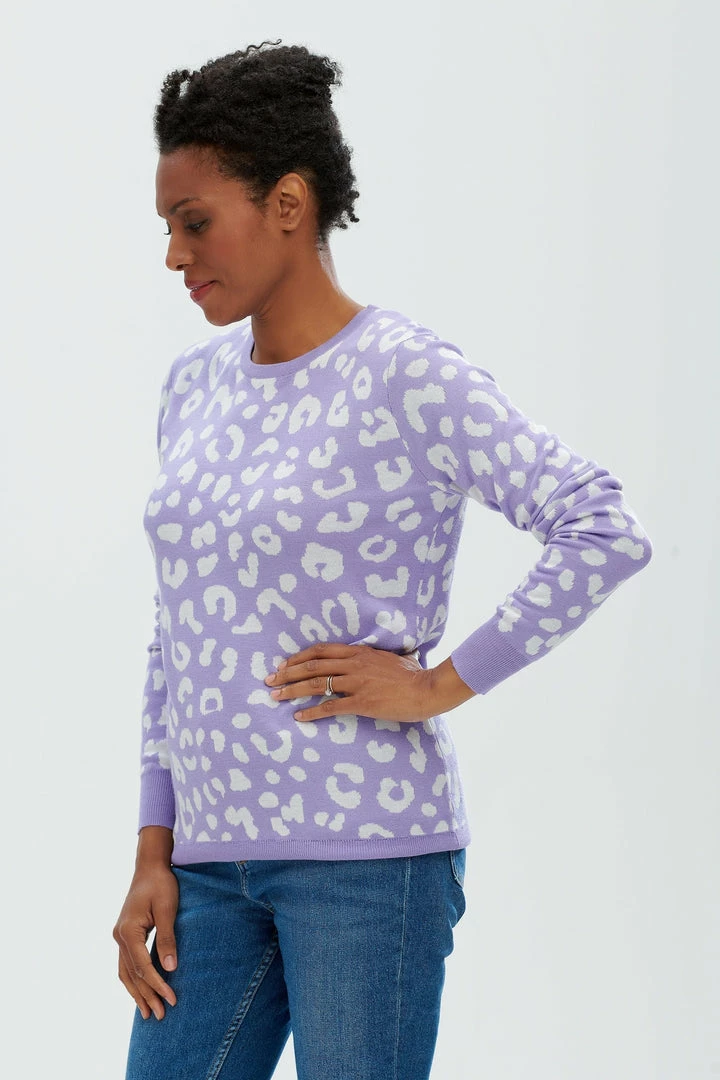 Our much loved Callie Jumper in a new design, thisΒ lilac designΒ can be worn year round. Pure cotton ensures its longevity and softness, while the classic details like ribbed cuffs and hem and round neck make it a wardrobe staple.