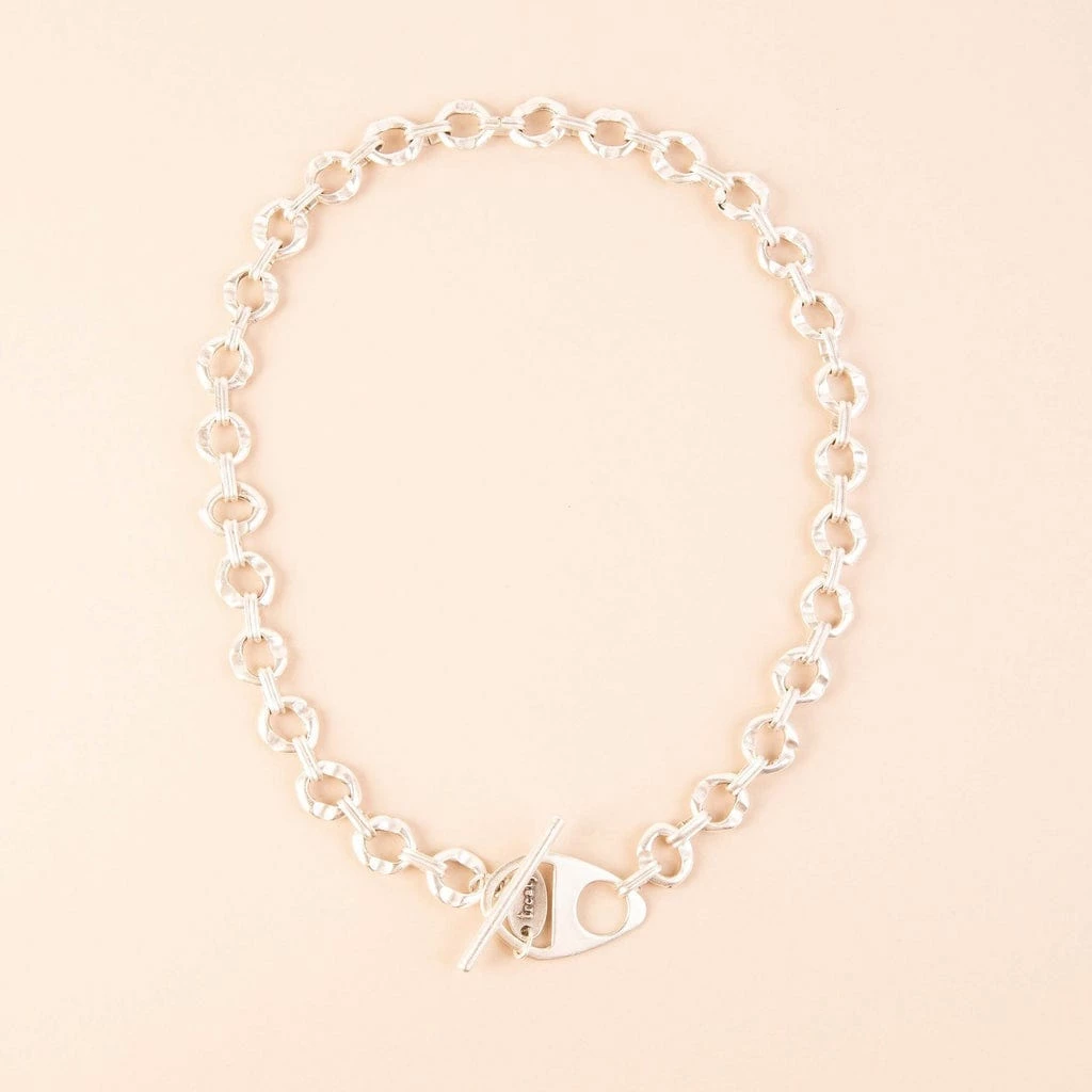 A textured chain-link short necklace with a classy toggle clasp makes a simple yet stylish every day piece – easy to wear and easy to wow!