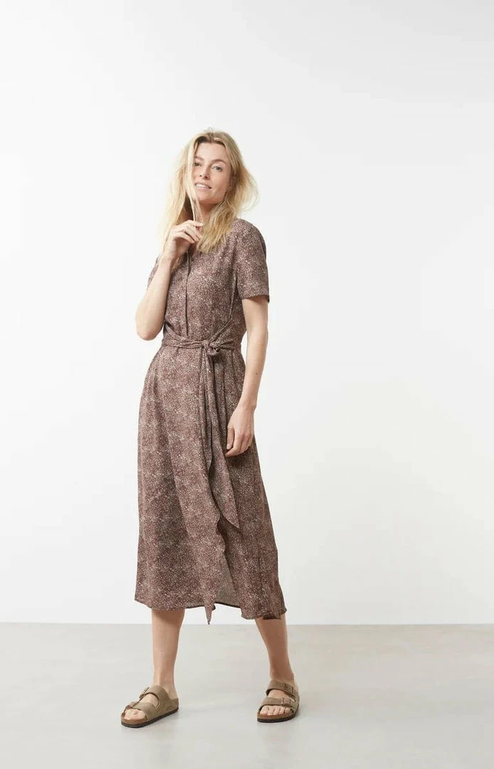 This elegant midi dress is carefully crafted from viscose and features a versatile print and a bow belt. The dress is detailed with buttons, a collar and a slit in the front of the dress. Cut with a relaxed fit, this dress provides comfort. Our model is 177cm and wears a size 36.ย