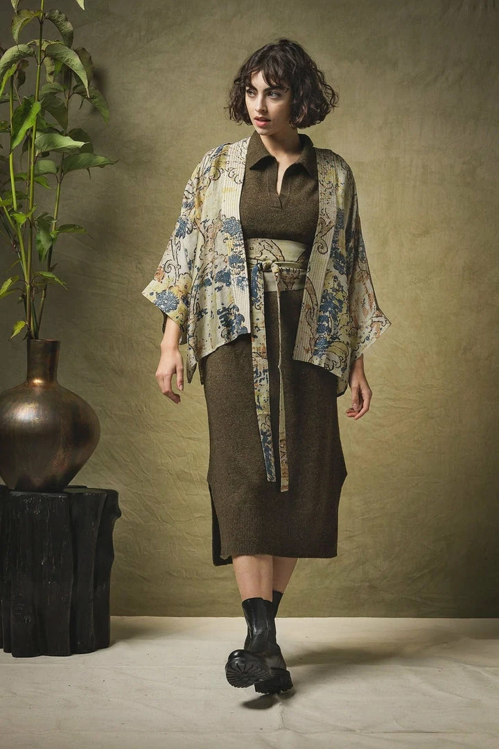 Our bestselling kimono jackets have loose ¾ length sleeves, an open front and a lightly embroidered lapel. Pair with a matching camisole and your favourite jeans in summer or layer over a polo neck during the cooler months.