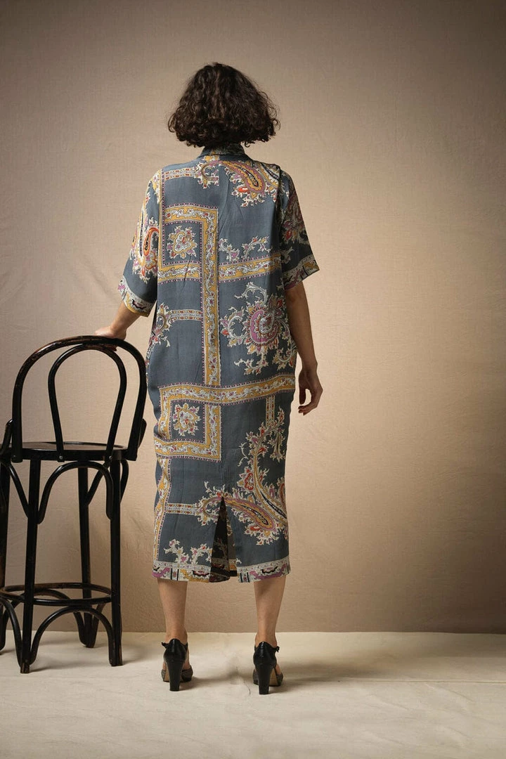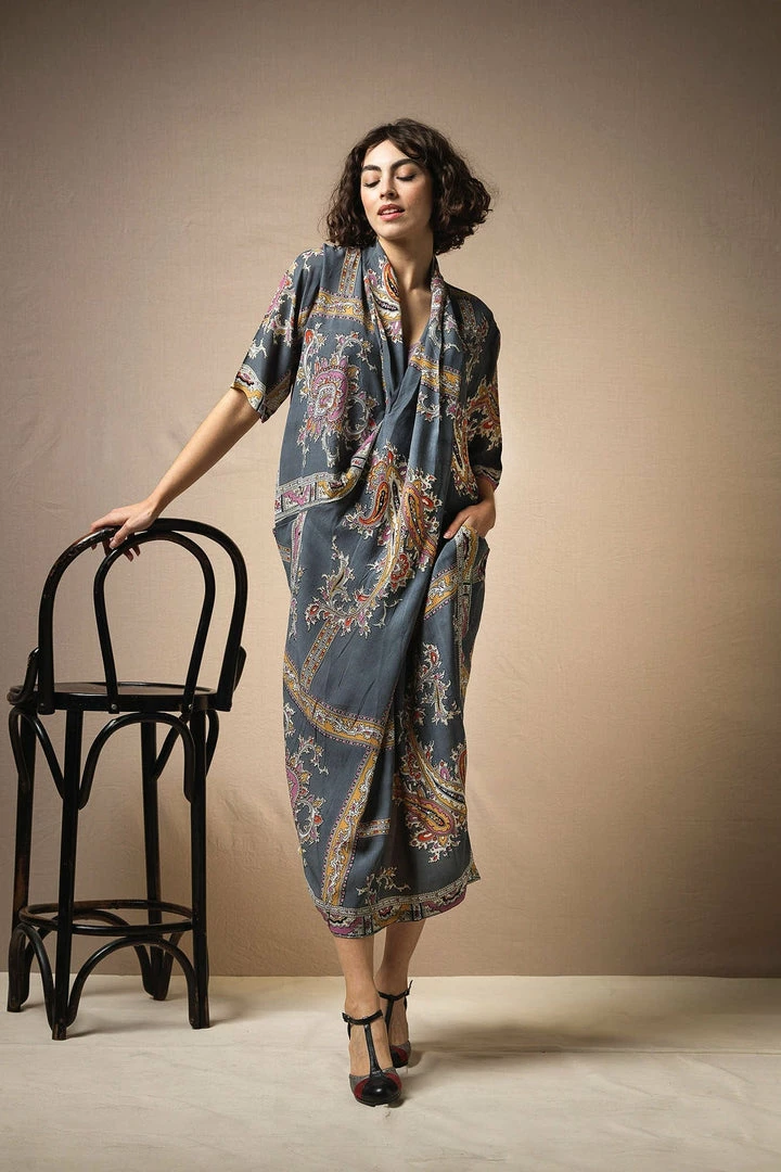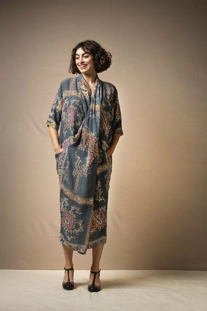 This cowl neck, V line dress features a pin tuck front, pockets and can be styled with your own additional belt to create a silhouette look.