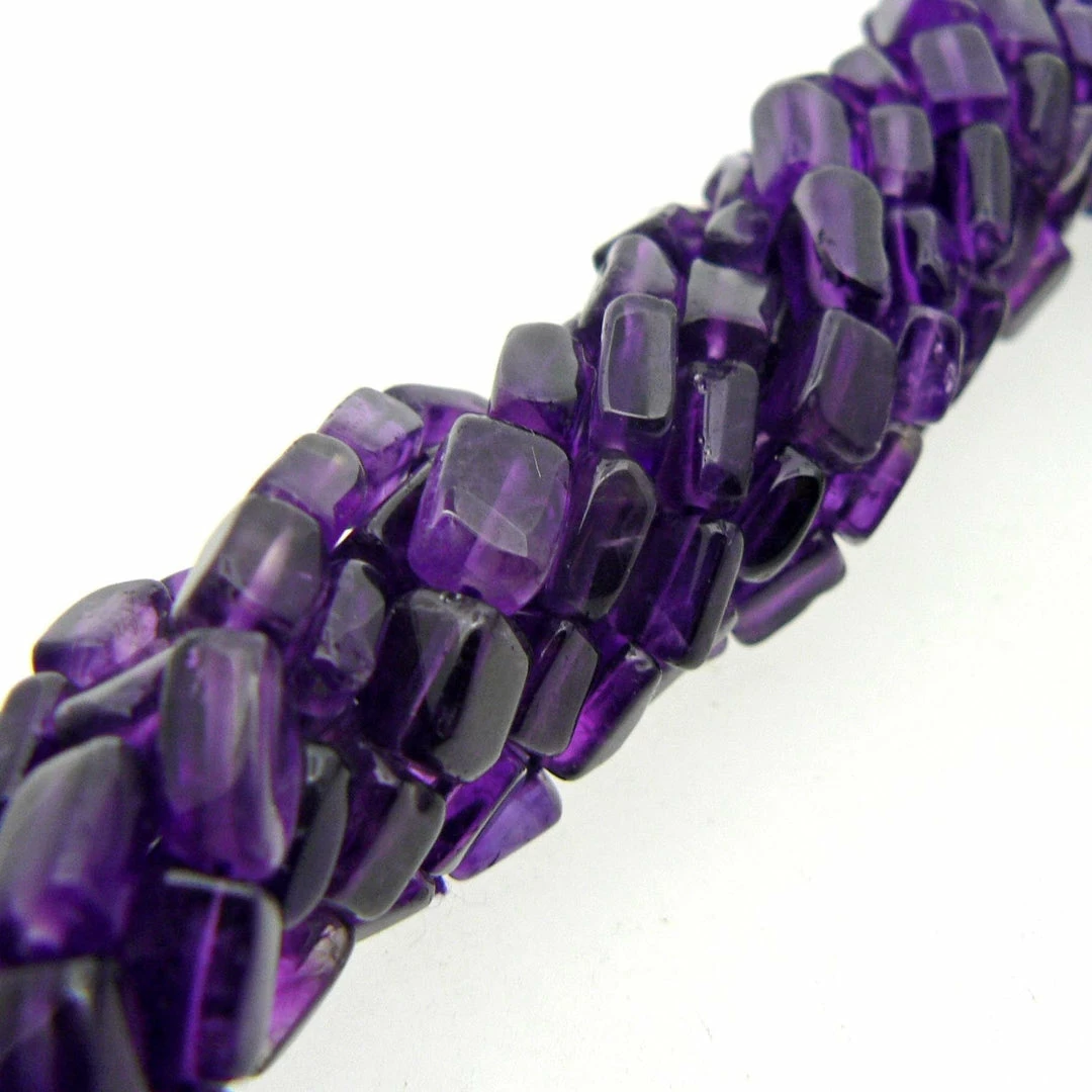 Lovely little dark amethyst rectangle beads that have many, many uses! Around 53 beads per strand. Beads measure around 6x4mm. Very good quality.
