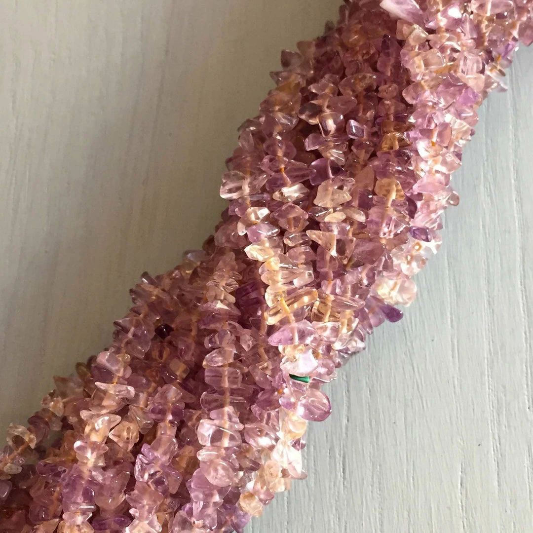 Light ametrine chip beads- full 35″ Strand- really, really pretty. Very good value- an inexpensive way to use this beautiful gem.