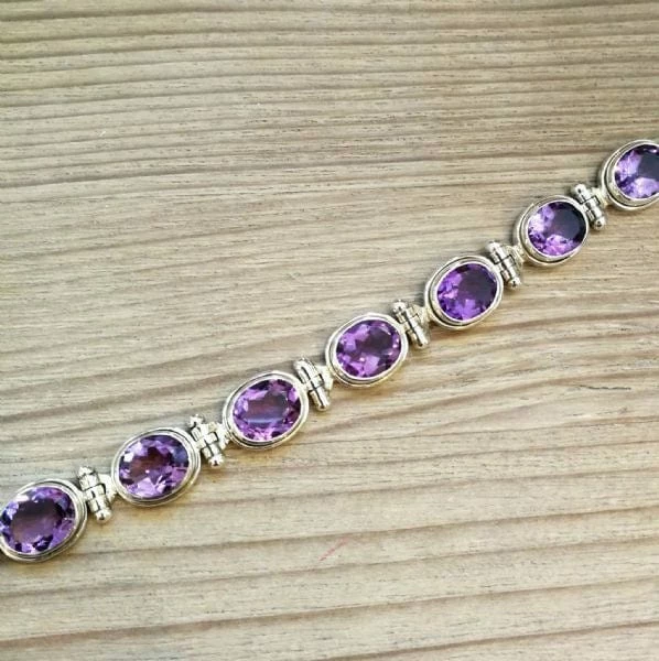 Best deal 🥰 Precious Sparkle Brazilian Amethyst Cut Stone Sterling Silver Bracelet 🧨