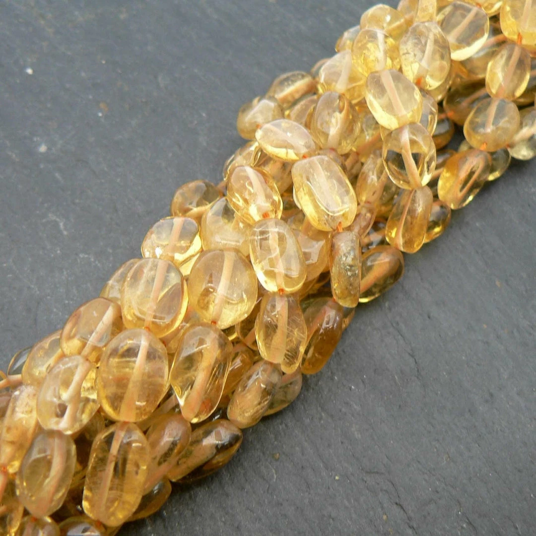 These are stunning plain (unfaceted) citrine oval beads with around 43 beads per strand. Best value around! They have very good clarity with some with inclusions. Good natural golden yellow colour. Size around 9x7mm approx. Some slight variation in size between the beads.