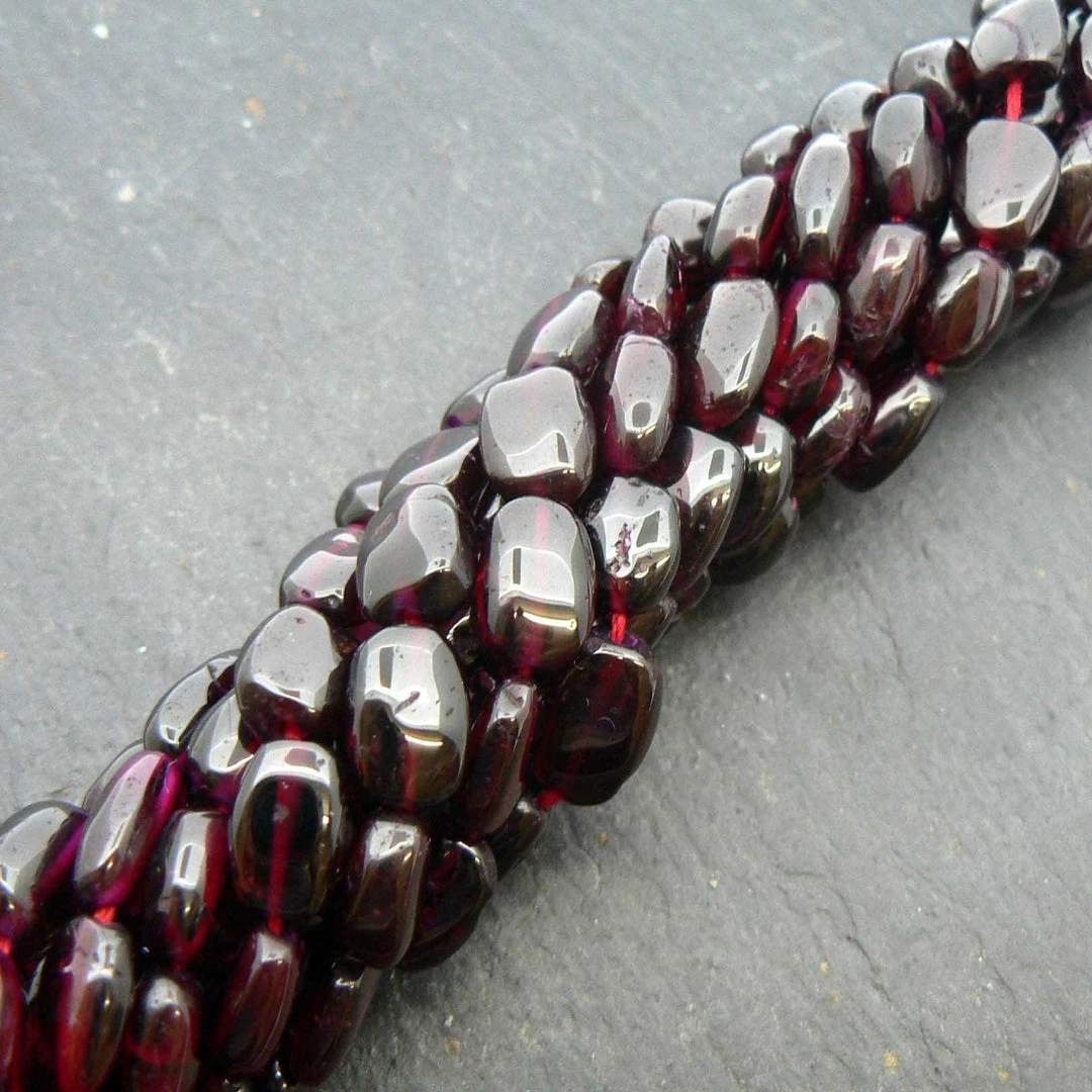 Useful Garnet plain ovals, measuring 6x4mm to 8x6mm approximately on a 15″ strand. Each strand has around 50 beads.