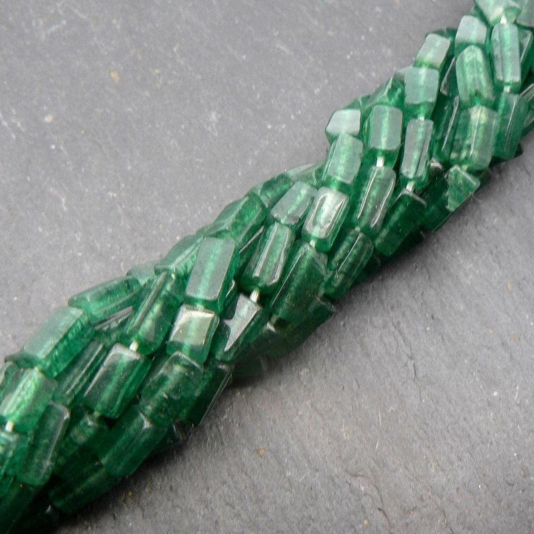 Green Aventurine Plain Rectangle Beads 15″ strand with beads measuring around 7x4mm in size. Good natural green colour and very reasonably priced.