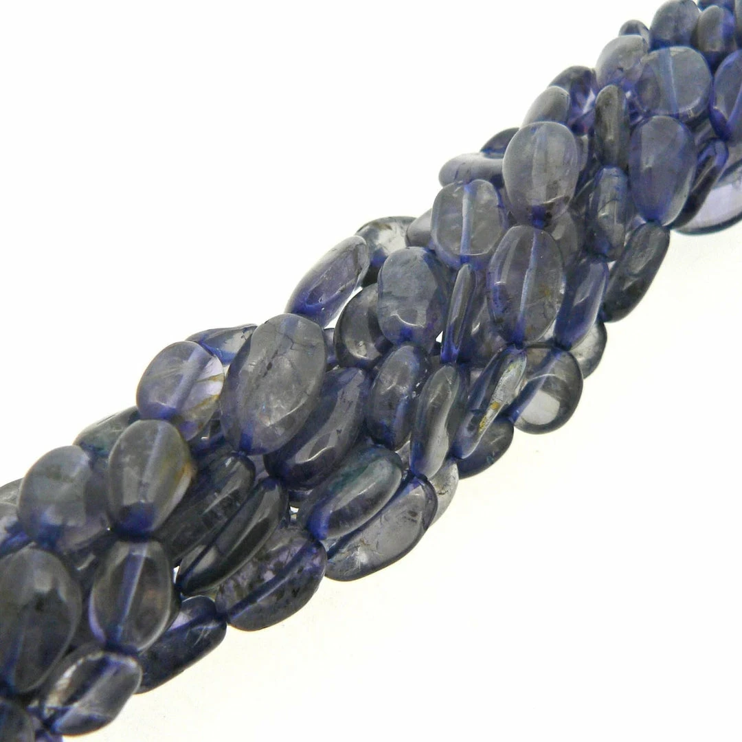 These Iolite plain (unfaceted) oval beads have great colour and make a good plain staple bead, useful in lots of creations. These beads measure 8x6mm to 10x7mm in size and there are around 40 beads on a 15″ strand.