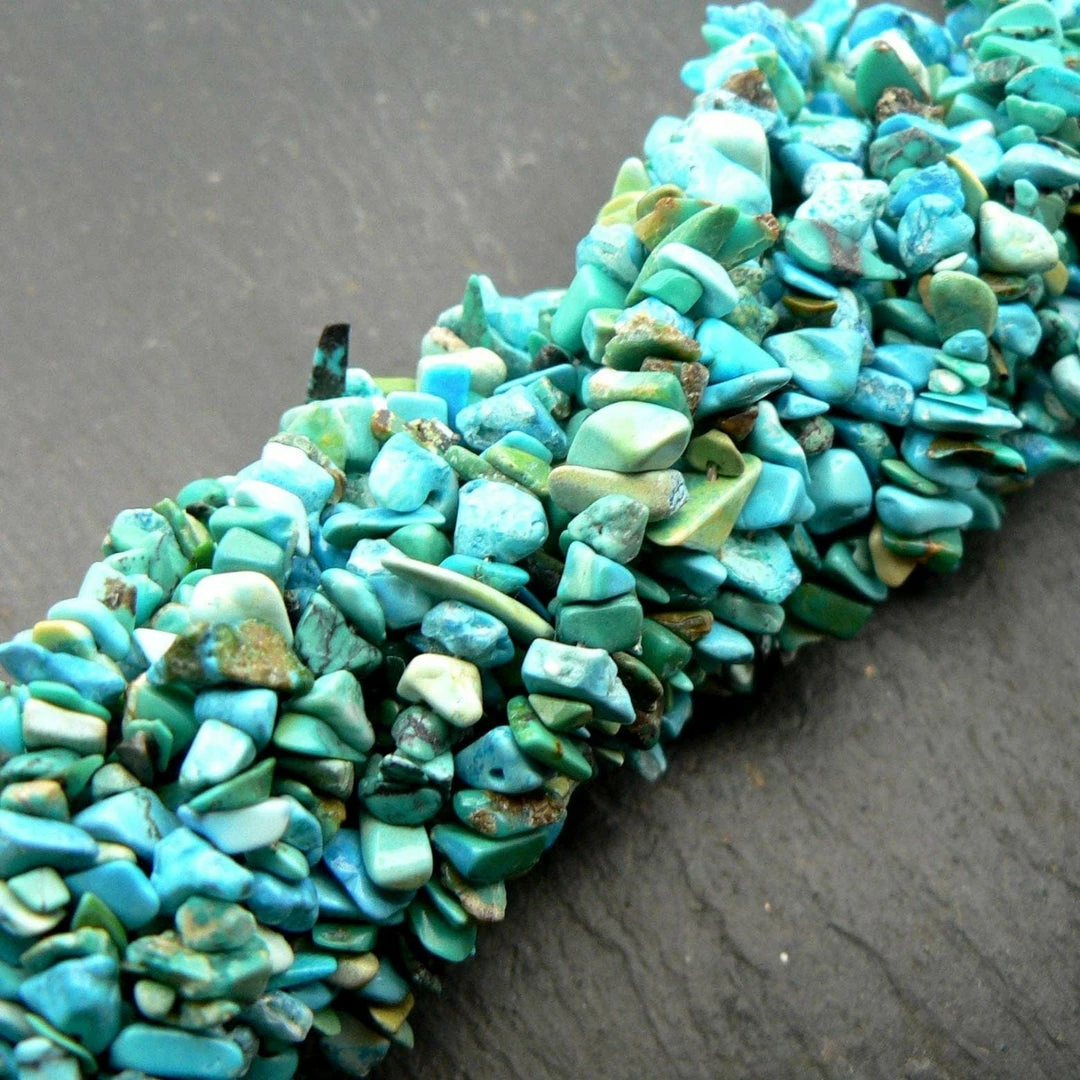 Really beautifully coloured natural Turquoise chip beads on a 35″ strand. Just the loveliest! Chips are fine measuring around 4-5mm wide.
