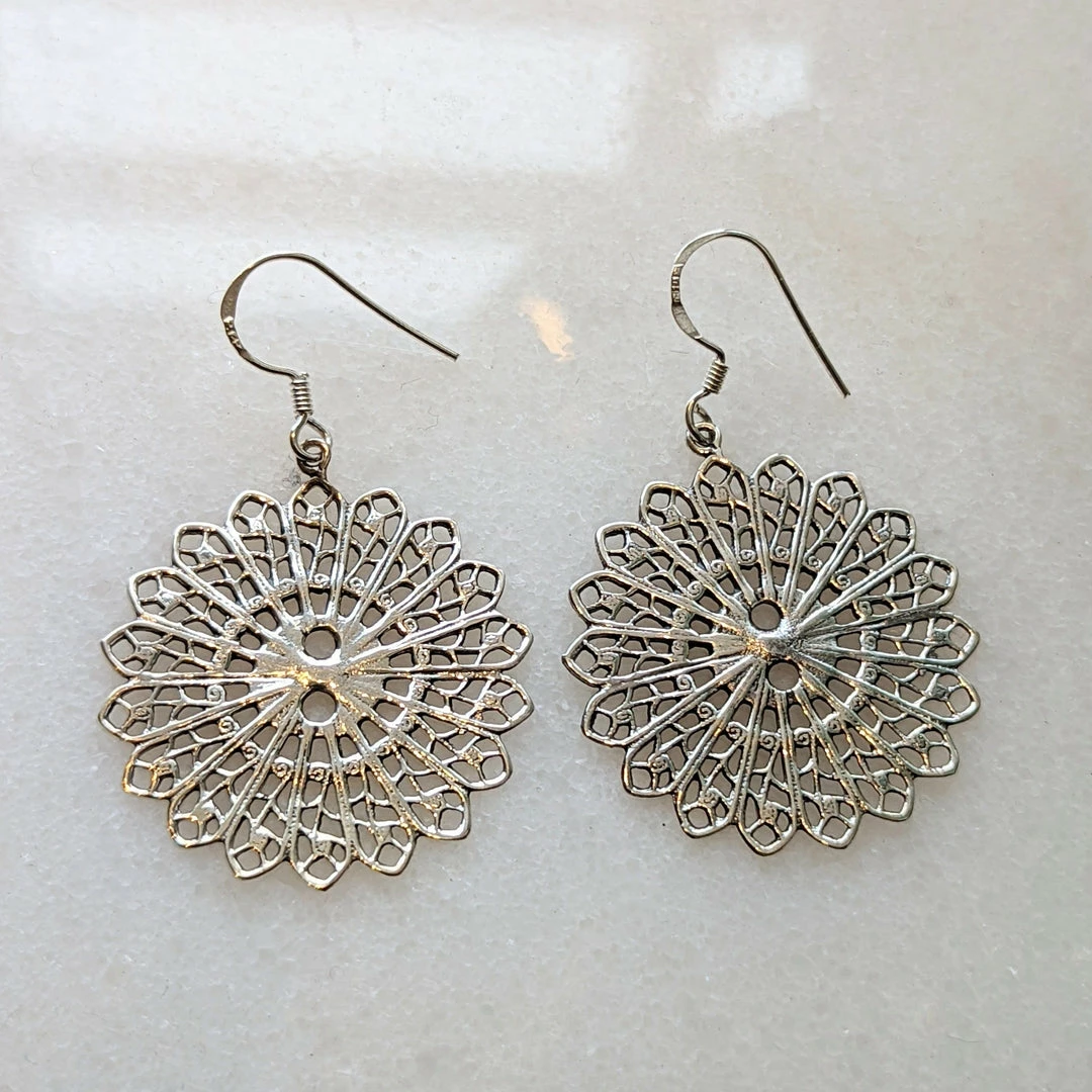 Gorgeous boho sterling silver sunburst earrings measuring 33cm across. The perfect finishing touch!