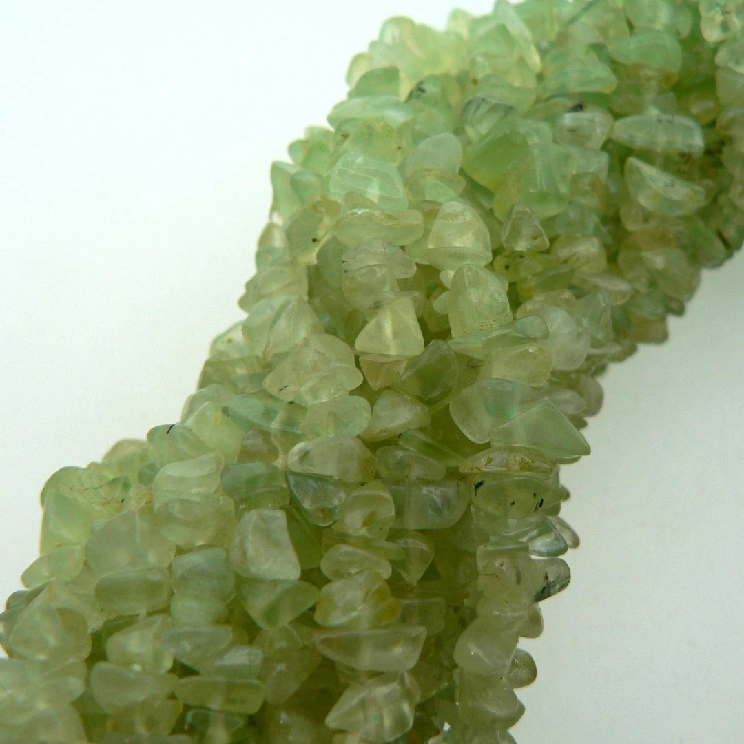 Absolutely stunning light, fresh Spring green natural Prehnite chip beads- nice and chunky- on a 35″ strand. Chips measure up to 7mm wide.