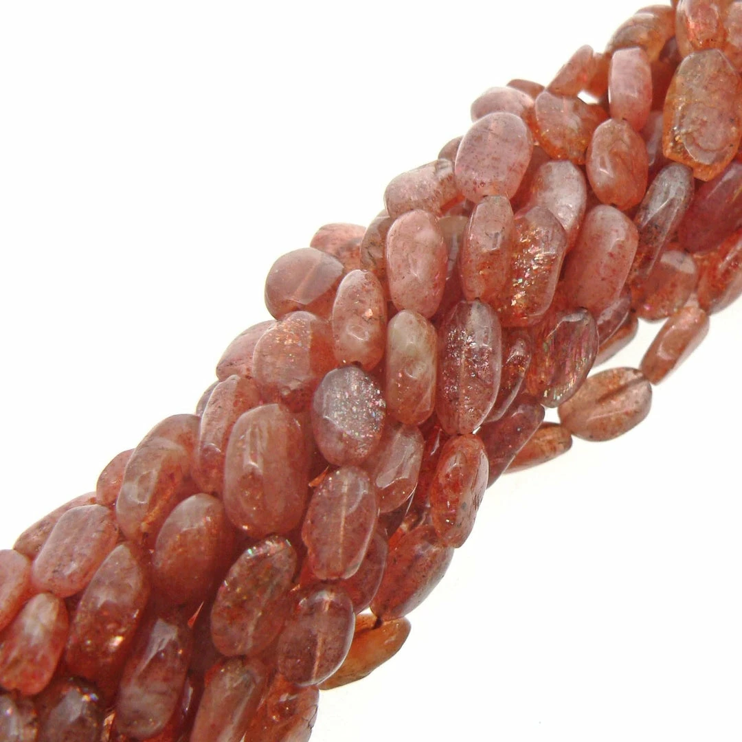 Lovely Sunstone Plain Oval Beads on a 15″ Strand with wonderful natural sparkle. Each bead is around 8x5mm in size.