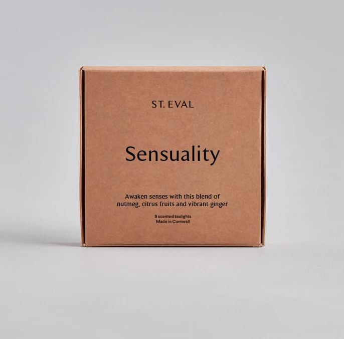 Sensuality Scented Tealights from St Eval are beautifully fragranced with a light feminine blend of citrus and floral notes. Enjoy our beautiful Sensuality scented tealights and let the luxurious blend of nutmeg, citrus fruits & vibrant ginger fill your home.