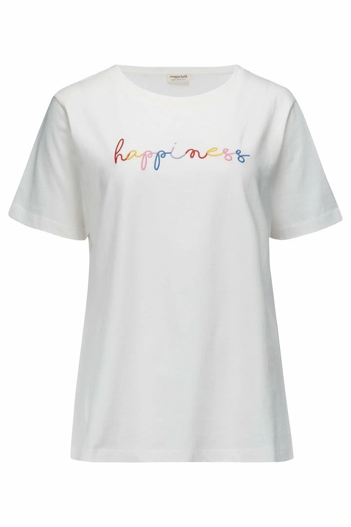 They’ve updated their signature t-shirt shape, the Maggie has straight side seams and a straight back for a classic fit.Β This is a simple and fun design with ‘happiness’ on the front. It’s the 100% Organic Cotton base that makes this tee extra special.