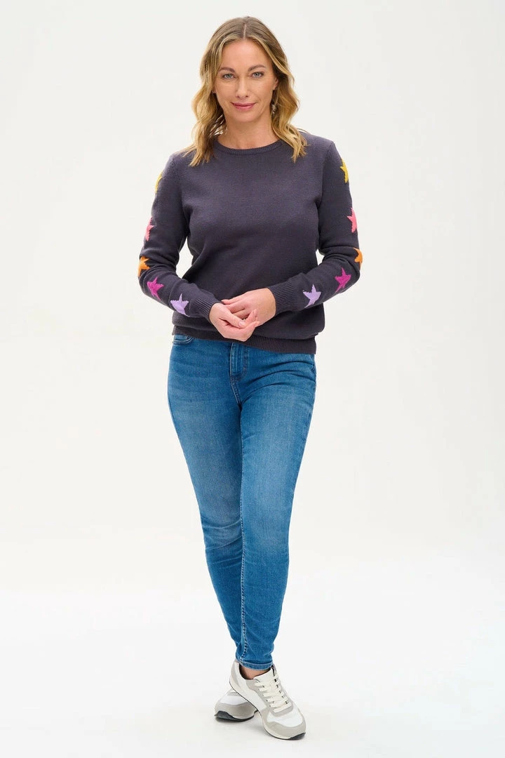 With stars down the sleeve, this grey crew neck jumper has an understated chic- perfect for looking like you didn’t have to try to look that cool!