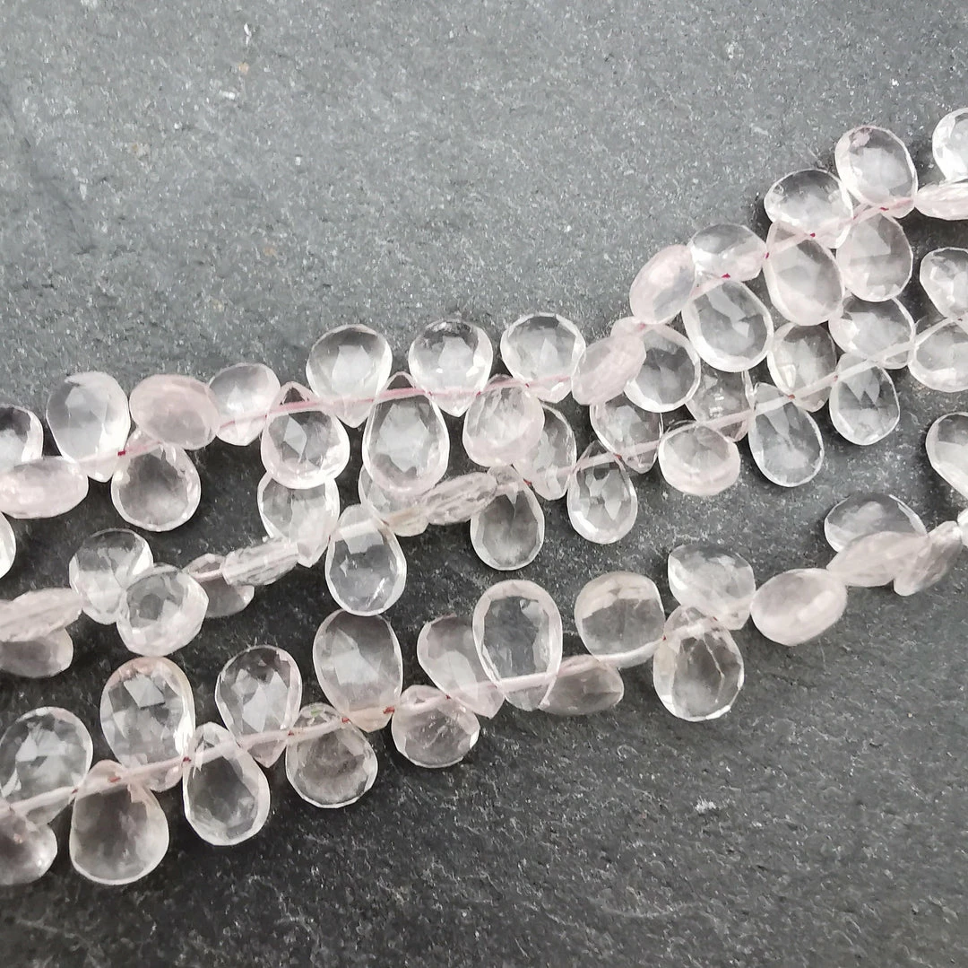Absolutely lovely Rose Quartz faceted pear briolettes sold in sets of 5, these beads measure 8x6mm in size. Great colour, and a fantastic buy.