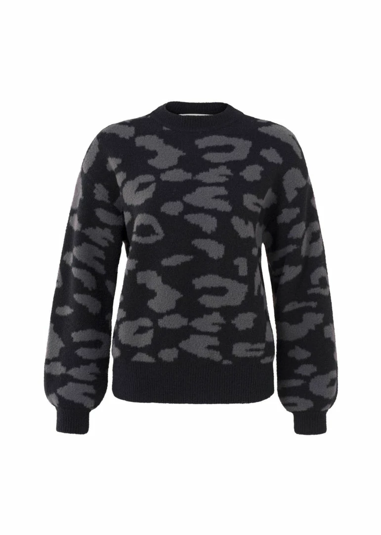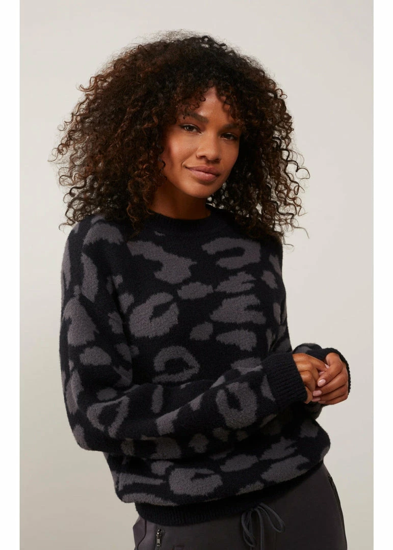 This elegant sweater features long balloon sleeves, a round neck and ribbed details. The abstract leopard print adds versatility. Our model is 173cm and wears a size S.