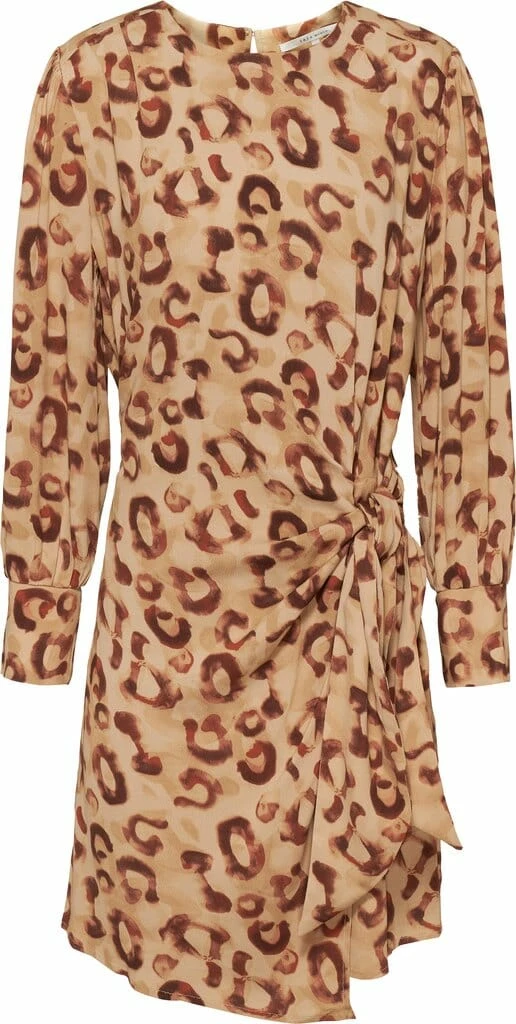 Crafted from viscose, this mini dress is designed with an abstract leopard print and features long puff sleeves. The dress is detailed with a knotted waist that creates pleated details. Style with boots for a casual look or combine with your favorite heels for a feminine look. Our model is 173cm and wears a size 36.