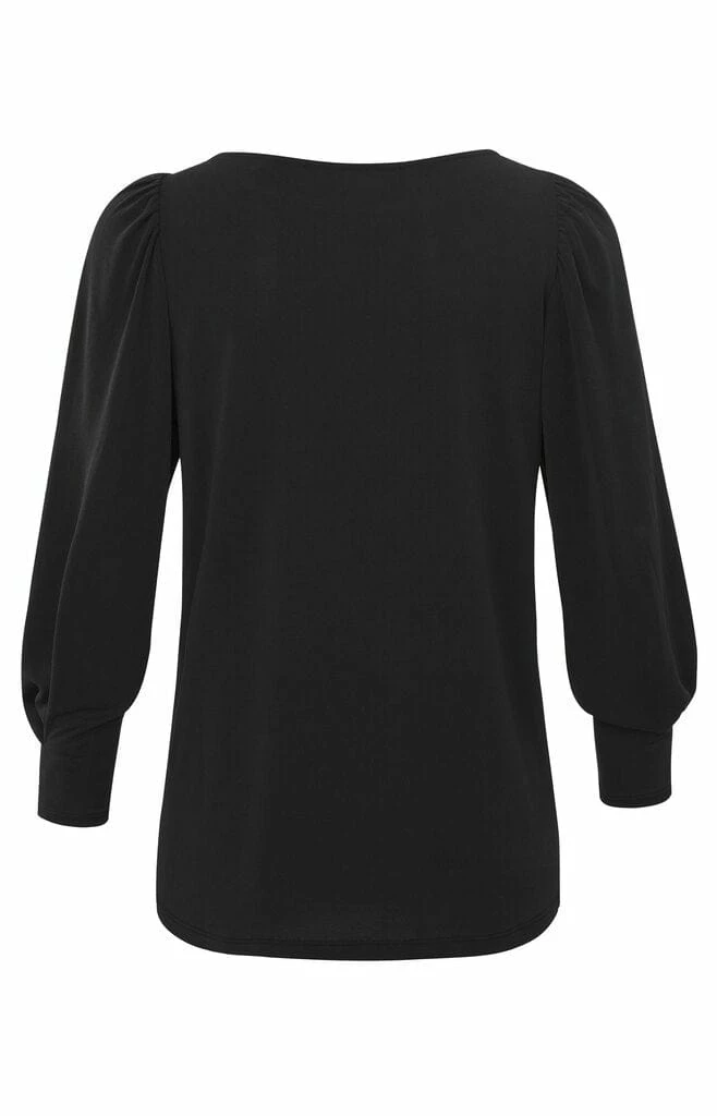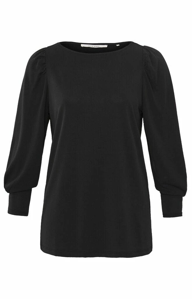 This top is made from a modal blend and features 7/8 puffed sleeves and a boatneck. The top is cut for a regular fit.Β