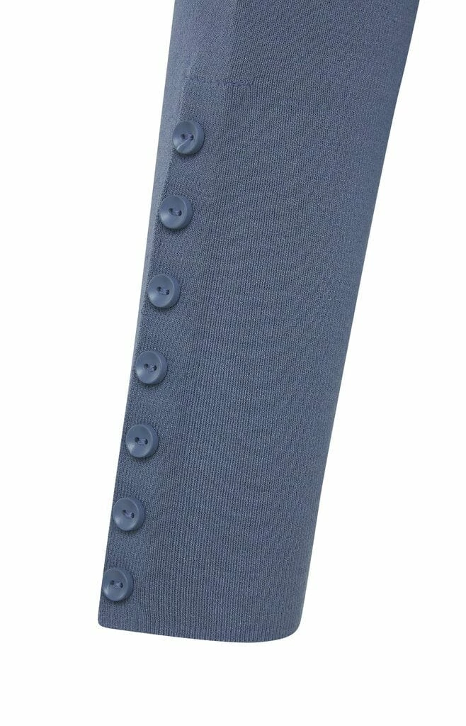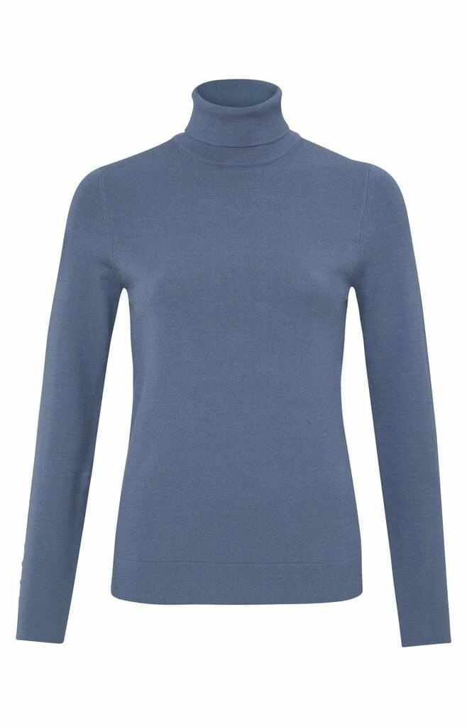 Stunning turtleneck in the most glorious shade of blue, with button detailing at the cuff. A real go to for the season.
